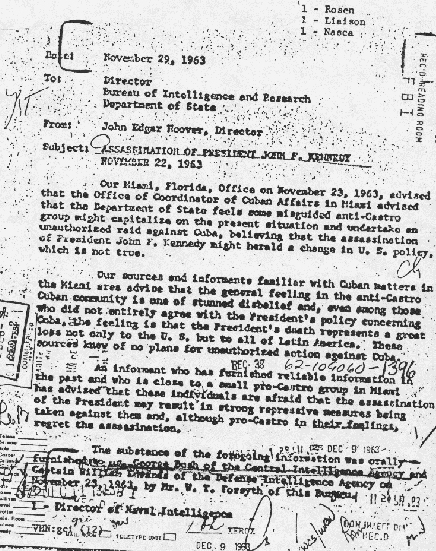 FBI Director J. Edgar Hoover reveals the briefing given to him by George Bush of the Central Intelligence Agency – but Trump keeps the rest of CIA files classified