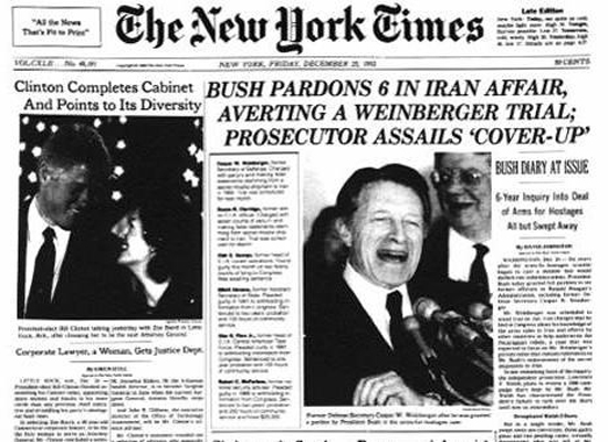 When both Bush and the CIA were, also, threatened by the Iran Contra Affair, involving US weapons illegally sold to Iran to fund Central American terrorists, the report further notes, Barr, again, destroyed this investigation by his masterfully engineering the Presidential Pardons of all of its conspirators before the Special Counsel prosecuting them could ever set foot in a courtroom. That, today, has paved the path for Trump to do the same.