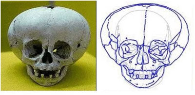 Skulls like this have been found in Ica Peru and Merida Mexico. Anatomical differences compared to modern humans have been found in the eye sockets (15% larger) and you can see from the photos that the cranium is quite significantly greater. The cranial capacity has been estimated to be twice the size of human skulls.