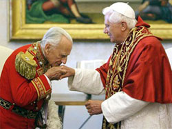 Pope Benedict XVI and the Freemason Andrew Willoughby Ninian Bertie (Prince and Grand Master of the order of Malta, from 1988 to 2008)