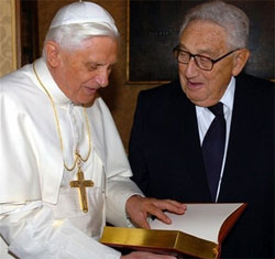 Benedict XVI and Henry Kissinger (founder of the Bilderberg Club along with David Rockefeller)