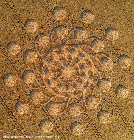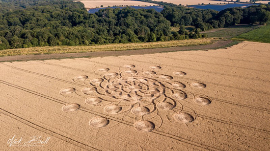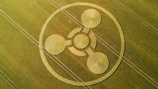 Facts: New crop circles were recently discovered in the UK in July 2018. One of them was the exact depiction of the chemical weapons warning symbol.