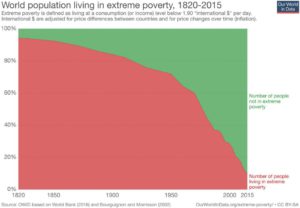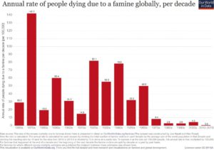 This increase in agricultural yields and efficiency due to elevated CO2 levels, in addition to modern equipment and synthetic fertilizers, has had significant economic benefits. Higher productivity has led to lower food prices and increased food availability, contributing to economic stability and reducing extreme poverty globally.