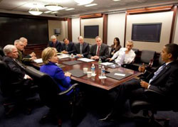 The hub of the NSC is the NSC Principals Committee, a kind of super cabinet. Its nerve center is the Situation Room in the West Wing basement. Twelve of the 13 people depicted in the famous White House photo taken in the Situation Room during the Osama bin Laden operation were connected to the NSC. By law, the Principals Committee includes the president, vice president, and secretaries of defense, state, and, since 2007, energy. The committee’s exact composition varies from meeting to meeting, to be decided by the president and senior White House staff. Within the broad strokes of the original 1947 law, as updated over the years and then amended by the Goldwater-Nichols Act of 1986, NSC quite literally makes its own rules, and those rules are set by the president.