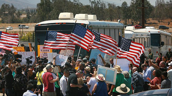 Protesters block Department of Homeland Security busses bringing immigrants in US