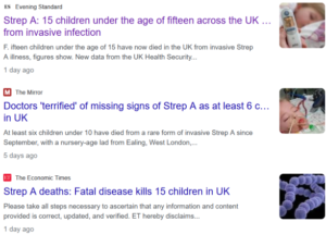 One example of a bacterial infection that could potentially be worsened by ADE or VAE is streptococcus A (strep A) infection. Strep A is a type of bacteria that can cause a wide range of illnesses, including sore throat, pneumonia, and sepsis. You will have most likely seen in the mainstream news that Strep A infection was killing children this winter.