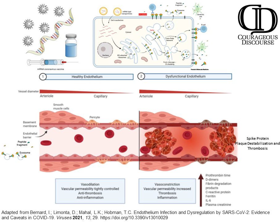 Each vignette is different, from an explosive fatal heart attack to rapid progression of coronary disease and the need for stenting or bypass surgery. A study by Gundy, who measured multiple biomarkers before and after vaccination, was presented as an abstract at the American Heart Association: it predicted heart attacks would happen with covid-19 vaccination based upon indicators that atherosclerotic plaque within coronary arteries would destabilize with circulatory Spike protein and cytokines.[i] This inflammatory milieu in combination with the thrombogenic nature of the Spike protein is a recipe for fatal and nonfatal heart attacks in patients with existing coronary disease.
