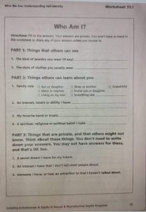 A worksheet at Gorham High School in Gorham, Maine asks students to share information about “attraction” with teachers that they haven’t talked about with others. (Courtesy of HB)