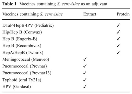 Parts of the mannan in yeast are similar or identical to parts of the human body. So S. cerevisiae – yeast – used in vaccines has the potential of causing autoimmune disorders. In fact, S. cerevisiae is used in a variety of ways in vaccines. It is, when used whole, a potent adjuvant. On top of that, genetic manipulation is now being used on it to create artificial antibodies, so S. cerevisiae is becoming more common in vaccines.