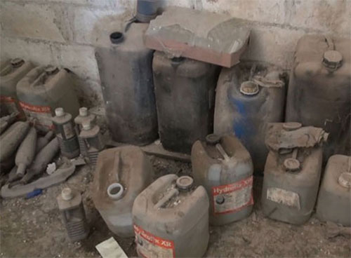 Items recovered included chlorine and protective gear, as well as ampoules used for mixing and special containers.