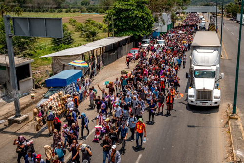 A huge caravan of Latin American immigrants traveling through Mexico unobstructed by local authorities, and seeking asylum at the US border.