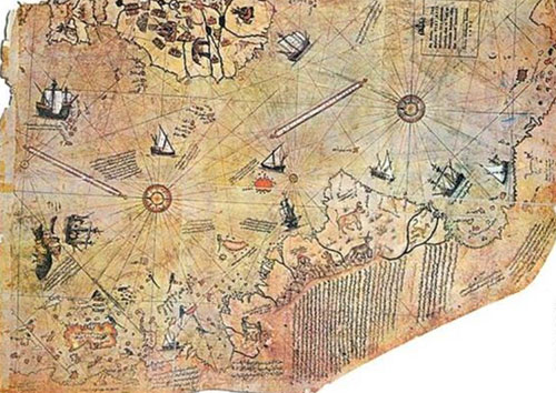Map of the world by Ottoman admiral Piri Reis, drawn in 1513.