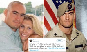 Even the National Football League took advantage of the super bowl to glorify military service in paying tribute to Pat Tillman who gave up his football career and a multi-million dollar contract to join U.S. Marines and fight the terrorists in Afghanistan being convinced by the War on Terror propaganda right after September 11. NFL’s tribute forgot to mention that Tillman was sent to Iraq and not Afghanistan, that he was killed there by his own comrades and that the military lied about his death even to his own family and that they covered up the incident. As Katie Couric reports, that story didn’t hold up. He had really been killed by friendly fire, shot accidentally by his fellow soldiers. For the past years, his family, led by his mother Mary, has been searching for answers about what really occurred, beginning the day she heard the news from Pat Tillman’s wife Marie.