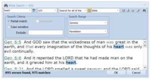 If one does a search for the word “heart,” however, it will return a result of almost 1000 matches where words in the original languages were translated into English as “heart.”