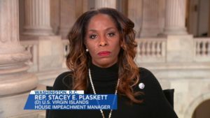 Stacey Plaskett, Ranking Member of the House Judiciary subcommittee, started badgering, insulting, smearing, and baiting Taibbi and Shellenberger. Trembling with hatred, she accused them of being members of some sort of Substack-based death squad that “poses a direct threat to people who oppose them,” and of stochastically terrorizing Yoel Roth, the former Twitter Censorship Czar, and of unleashing “homophobia and anti-Semitism” on him. Then she launched into a spittle-flecked rant about “January 6” and “threatening our democracy,” until she was restrained by James Jordan, the Subcommittee Chairman. And this was just during her opening remarks!