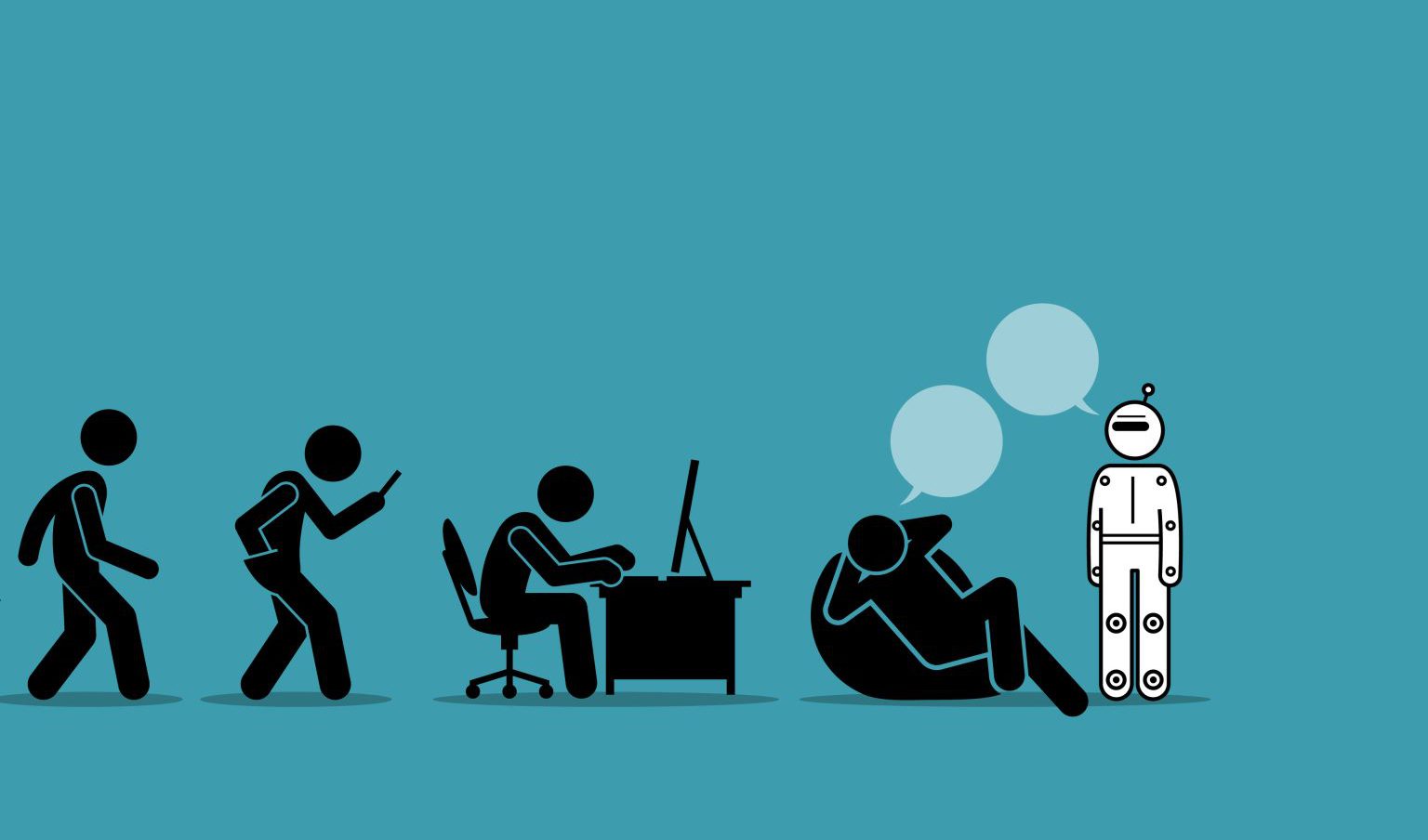 Humans can no longer evolve in the classic sense. We don’t let humans die naturally if they cannot adapt to their environment. This empathic response is one aspect that makes us human. But because technology becomes more and more advanced, taking more and more responsibility away from humans, we cannot evolve, but instead we “devolve” into something quite different from what we were originally created to be.