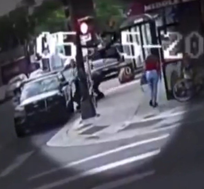 A look at the street video surveillance of the scene shows the car allegedly driven by George Floyd parked along the sidewalk (on the top right of this still frame), with another civilian car parked very closely behind the Floyd car. This is the car from which the viral arrest video was captured.