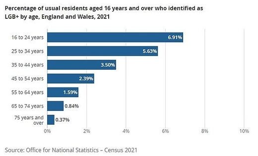 There were sharp variations across the country, with some local areas recording as many as one in six 16-24 year-olds identifying as LGB+.