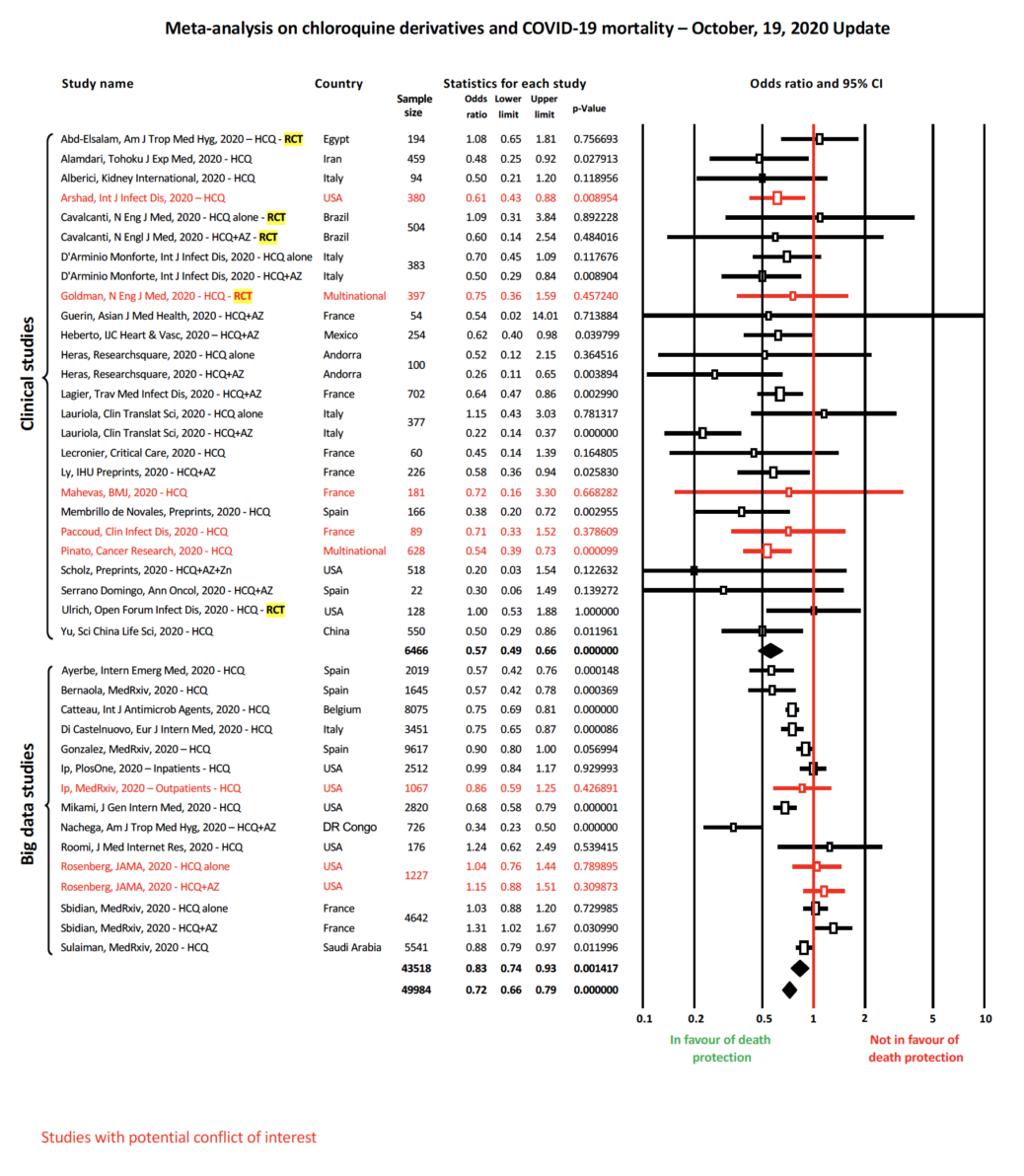 A case in point is hydroxychloroquine (HCQ) whose efficacy against covid-19 has been tested in no less than 195 published papers. The conclusion of the statistical meta analysis of those papers could not be clearer: “HCQ is effective for covid-19. The probability that an ineffective treatment generated results as positive as the 195 studies to date is estimated to be 1 in 1 quadrillion (p = 0.0000000000000009).” Another way to ascertain the efficacy of HCQ is simply to check if the research papers received funding from Gilead – the American-Israeli company, laden with conflicts of interests – that produces the now infamous Redemsivir. When there are conflicts of interest with Gilead, 73% of the papers claim that HCQ doesn’t work, if there is no conflict of interest, 83% of the papers conclude that HCQ works. It’s that simple.
