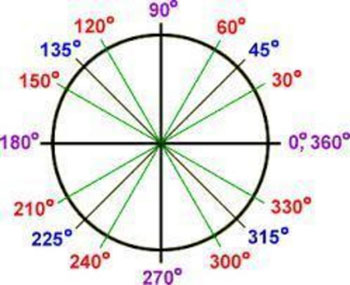 • This will be true as well for all reductions including 45-degree angles within a circle as well as 90-degree angles: (45 degrees) 4+5=9, (90 degrees) 9+0=9, (135 degrees) 1+3+5=9, (225 degrees) 2+2+5=9, (270 degrees) 2+7+0=9, (315 degrees) 3+1+5=9.