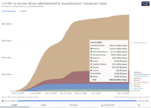 At the time of writing this article (February 20, 2023), the estimated number of doses worldwide is of the order of 14 billion (1.75 doses per person).