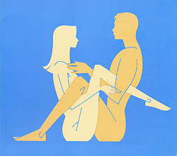 After realizing the posture in which the woman was on top of the man, they will change the position, being easier for both to adopt sexual postures in sitting positions seated one facing the other, looking into their eyes. These postures do not permit the making of too ample movements. The woman leaves the penetration to her lover, being seated on top of him, with her legs around his trunk, her breasts and lips being easily accessible to his mouth, her back and buttocks can be easily touched by his hands. The seated postures assure a greater intimacy and a very good control over the sexual energies.