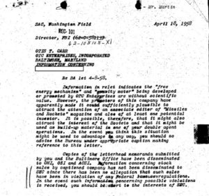 Shortly after this attention trouble began brewing for Carr. Like other great inventors Carr’s work was seized by the government. This occured in January 1961 when Louis J. Lefkowitz, the Attorney General of New York at the time, stated that “Carr had swindled $50,000” and later that year True Magazine labelled him as a “hoaxer.”