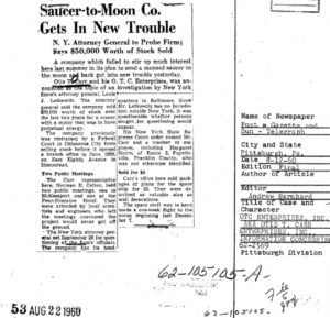 In the late 1950s, OTC Enterprises, Inc. of Baltimore, Maryland put out a statement that was published in the April 3rd edition of the Baltimore Enterprise. The statement claimed that the company was ready to manufacture a flying saucer that was capable of travelling outside of the Earth’s atmosphere. All that was needed was a massive amount of funding, approximately 20 million dollars. The equivalent to that today is about 250 million.