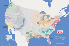 Where ever you find a bold new initiative related to the plans of the global elite, you will find documentation arising from various think tank organizations in support of these goals. With regard to the coming forced subjugation of the American population to the “stack and pack” megacities, two important papers, the 3‑D: Infrastructure for California’s Future and the National Academy of Public Administration’s Memos to National Leaders: Partnerships as Fiscal Policy, jump to the front of the line in espousing the megacities concept. On August 27, 2014, alternative media exposed the megacities concept in revealing something called the America 2050 plan.