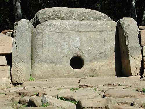 There’s not much variety in the decoration of these megaliths either, mostly vertical and horizontal zigzags, hanging triangles and concentric circles. One decorative motif found across the top of the porthole slab was the most common one, in almost all of the structures. Experts describe it as a lintel held up by two columns. Relief pairs of breasts were found on a few dolmens as well, appearing usually above the two columns of the porthole decoration. There were also stone plugs, probably used to block the portholes, recovered in almost every dolmen, which were sometimes phallic-shaped. Some of the most unusual items associated with dolmens are big round stone balls, double balls and animal sculptures.