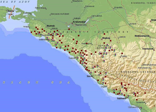 In the vicinity of Tzelentzchik, Touapse, Novorossiysk and Sochi in Russia and the Abkhazian region of Georgia, there are thousands of megalithic monuments, called “dolmens” by the local people. Numerous archeological expeditions have tried to figure out their purpose, but have been unsuccessful so far. Archeologists from all over the world have examined these dolmens and claim that these megalithic structures are about 2,000 – 4,000 years old.