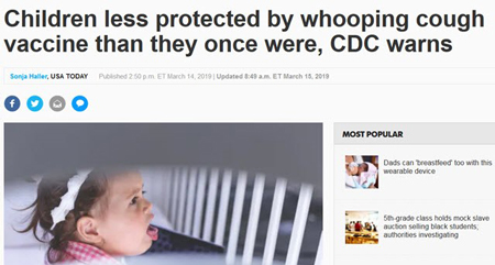 CDC Announces in March 2019 that Children Are “Less Protected” by Whooping Cough Vaccines than They Once Were