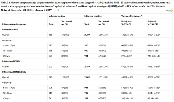 While the overall adjusted effectiveness for all age groups comes out to 47 percent, the older one gets, the less effective the flu vaccine becomes. That 47 percent actually breaks out as 61 percent overall for ages six months to 17 years; 37 percent overall for 18-49 years; and just 24 percent overall for people age 50 and over.