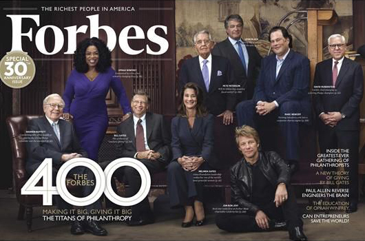 Together, the philanthropists in the room have committed a total of more than $72.5 billion to charitable causes in the period 1996 – 2009, according to Chronicle of Philanthropy tallies.