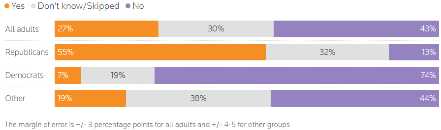 Some 27% of respondents said they approved of the strikes, which were conducted alongside Israeli attacks on Iran, while 43% disapproved and 29% were not sure. About 9 in 10 respondents said they had heard at least a little about the strikes, which began early on Saturday, February 28 – during the Islamic holy month of Ramadan – with a surprise attack that killed Iran’s leader.