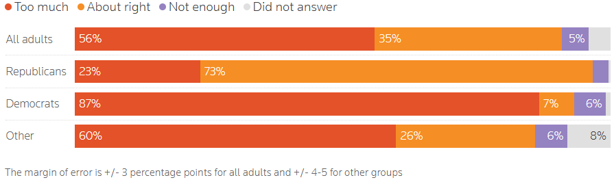 The poll, which closed on Sunday, March 1, showed that 56% of Americans think Trump, who has also ordered strikes in Venezuela, Syria and Nigeria in recent months, is too willing to use military force to advance U.S. interests. The vast majority of Democrats – 87% – held this view, as did 23% of Republicans and 60% of people who don’t identify with either political party.