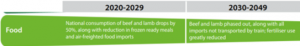 This means that the consumption of beef and lamb will need to be drastically reduced. The report suggests that national consumption of these meats will need to drop by 50% between 2020 and 2029, and then be “phased out” entirely between 2030 and 2049.