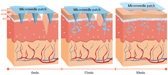 The biodegradable patch can be self-administered by placing it on the wrist for 20 minutes. Since the needles dissolve while they are in the skin there is no danger of passing on blood-borne diseases.