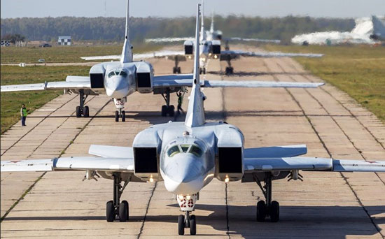 Russian heavy bombers waiting at Hamedan State airbase in Iran for orders to strike US military targets in Syria, on April 13, 2018