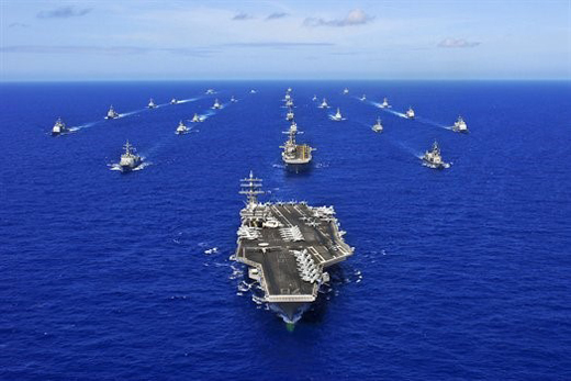 Massive US war fleet led by the nuclear-powered aircraft carrier U.S.S. Harry S. Truman while sailing towards Syria on April 16, 2018