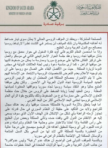 Secret Saudi Arabian diplomatic cable released by WikiLeaks shows order to destroy Syria at all costs – even if the United States at any time “shows no desire” to do so