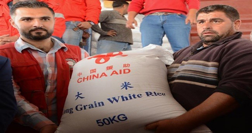 China delivered 1,000 tons of rice to Syrian people who are under a relentless extermination campaign led by the United States