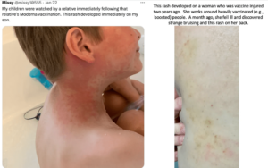 Note: in many cases the timing between shedding exposures and shedding symptoms makes it difficult for any alternative explanation to reason the chronology. This reader for example had menstrual hemorrhages, and then her period stop for 5-6 months all 4 times her husband was vaccinated (even when she was unaware he had been vaccinated)—symptoms she had never otherwise experienced in her life. Likewise, to quote another person “I was skeptic about shedding till it occurred to me.”