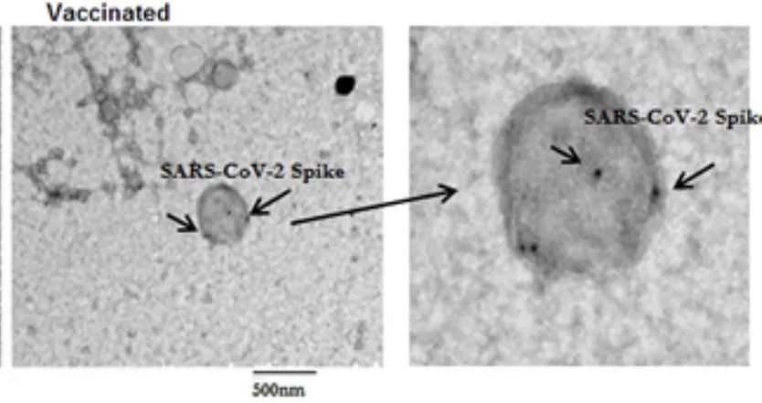 Collectively, this suggests that vaccinated people are continually exhaling spike protein studded exosomes, and that those around them are either inhaling them or touching surfaces they contacted, and then reacting either to the pathologic spike proteins on the exosomes (more likely), or taking up the exosome content and effectively being vaccinated with vaccine mRNA the exosomes traffic into their cells (less likely).