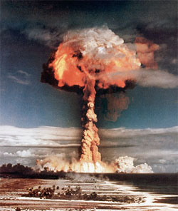 3. Radiation – all the radiation is produced within the first minute of the explosion. An unprotected person within a couple of miles would be exposed to radiation in amounts that he or she could not live for long if initially surviving the heat and blast effects.