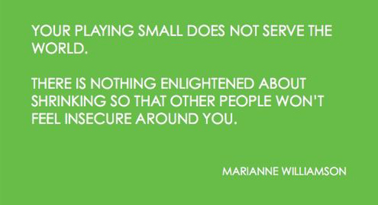 The famous Our Greatest Fear quote by Marianne Williamson says: “Your playing small does not serve the world”. Allow yourself to think big, even when your inner monologue tells you not to.