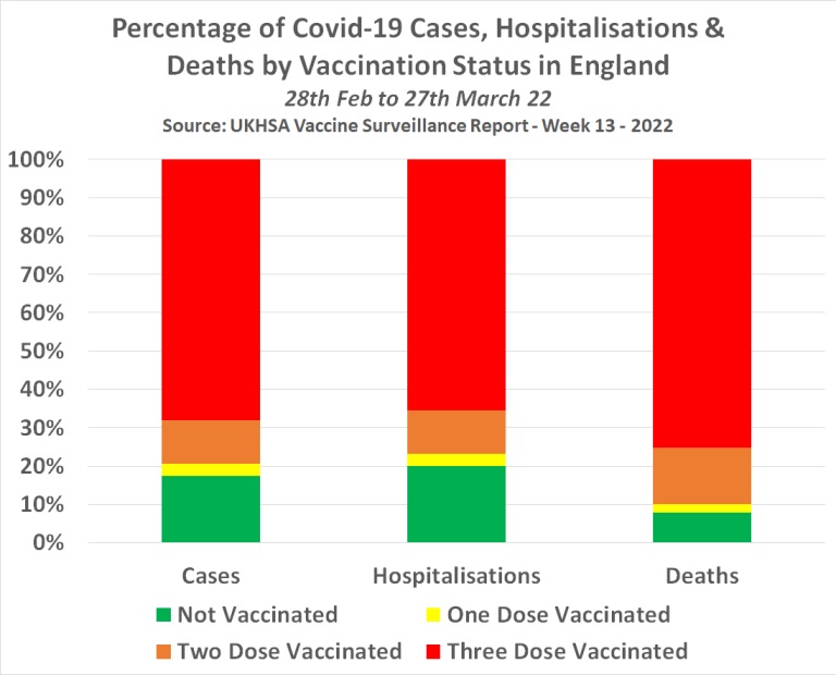 The UK Health Security Agency (UKHSA) published a weekly covid-19 Vaccine Surveillance Report, and the Week 13 – 2022 report contained data on covid-19 for the first 4 weeks of March 2022.