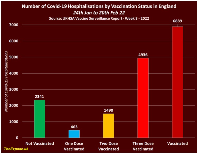 In February there were 2,341 hospitalisations among the unvaccinated, but in March this fell to 2,065 hospitalisations. Whereas the triple vaccinated suffered 4,936 hospitalisations in February, but in March this increased to 6,750.