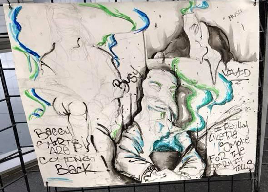 These paintings were hung in the very front of the courthouse, next to the main entrance. They are reportedly created by local high school students. Their teacher said to one of the complainants: “The students are learning that they don’t identify people by their faces.”