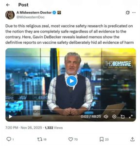 • Since “vaccines that end infectious diseases” are a central part of this mythology, those within the conventional medical system, in order to maintain their existing prestige, are essentially forced to emphasize the absolute primacy of vaccines, regardless of the evidence against them or the fact that, as Secretary Kennedy brilliantly demonstrates, there is no actual evidence that vaccines were responsible for the decline in infectious diseases for which the medical industry has falsely claimed responsibility.
